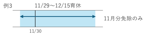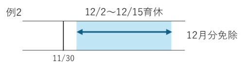 月末に育児休業を取得していないものの、育児休業の開始日が含まれる月に14日以上の育児休業を取得した場合にも当該月の社会保険料が免除となります(例2参照)。
