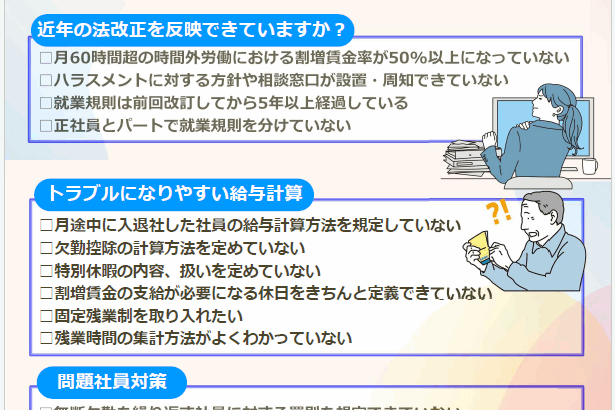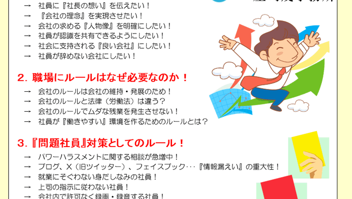 様々な労務管理上の事項について、専門家として的確なアドバイスをお送りします。