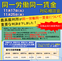 同一労働同一賃金対応相談会超重要最高裁判決対応!